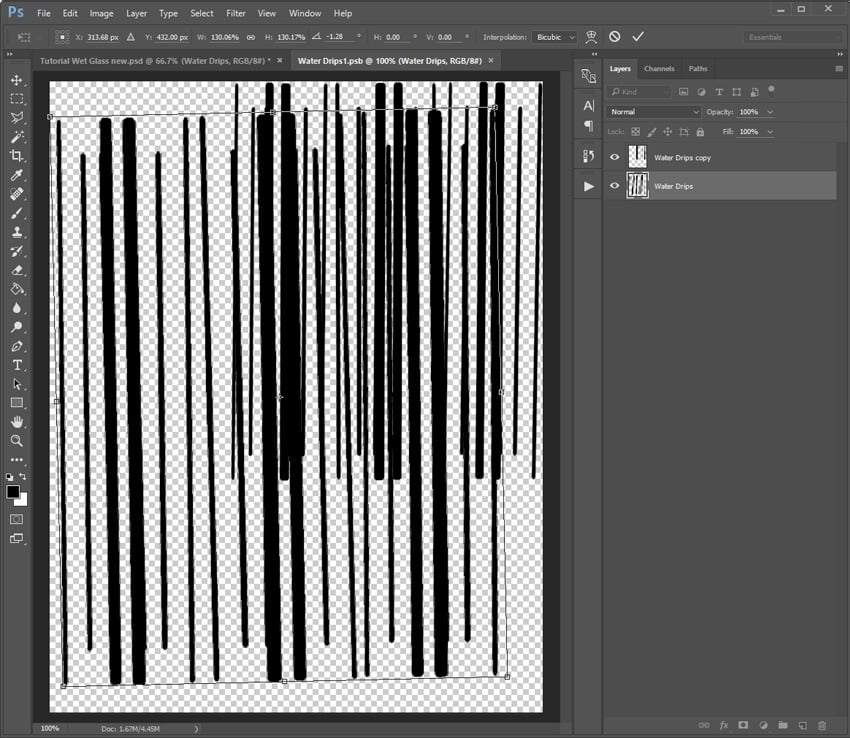 Select the Water Drips layer. Go to Select > All, and you'll find that the whole canvas area will get selected. Then, go to Select > Transform Selection.