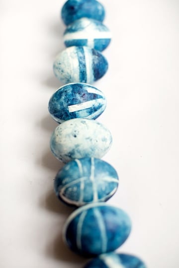 Last year I experimented with shibori-dyeing techniques and fell in love with the gorgeous blues created with indigo dye. I've been waiting for months to make a batch of colorful Easter eggs! The rich colors turned out even better than I had hoped. Here's how to dye your own indigo eggs.