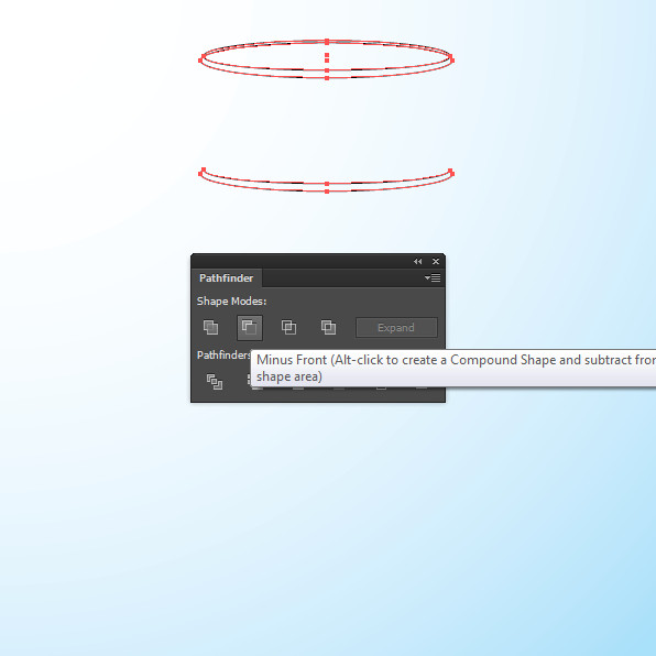 Copy the top ellipse with Command + C then paste with Command + F. We'll need the copy in the next steps. After that select the original ellipse and the rectangle you made in Step 1. Open the Pathfinder Panel and click on the Minus Front button.