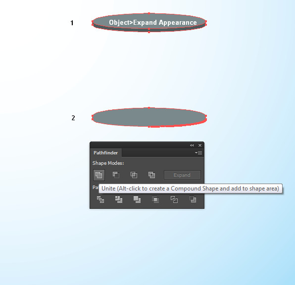 Now select the bottom ellipse and the rectangle from Step 1, open the Pathfinder Panel and click on the Add to Shape Area button.
