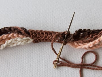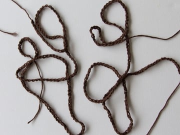 With dark brown, chain 160. Cut the yarn and pull through the loop on your hook. Make two identical chains.