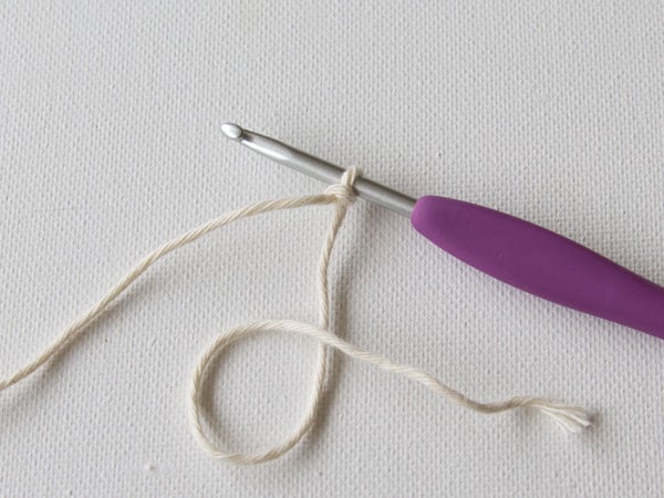 Using the white yarn, start with a slip knot on your hook.