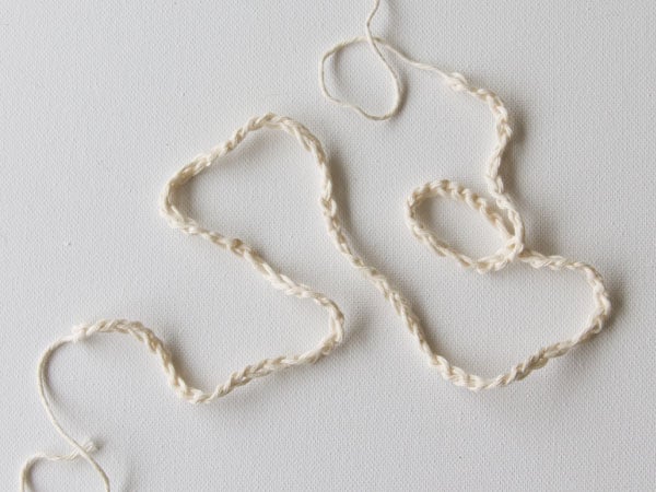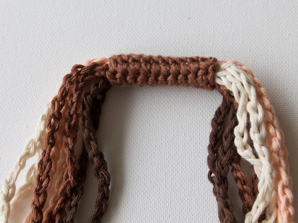 Join each chain by tying a knot. Cut off the yarn ends.