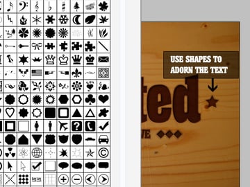 Now I wanted to add some shapes and more text to embellish my wanted text. I used Photoshop shapes like stars and added some extra text below. Then I just copied steps 4-10 for each one.