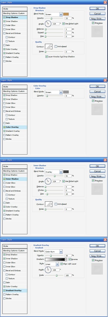 Now we need some neat layer styles to make this work. Here I've applied them already; in the next steps I'll show you the actual settings.