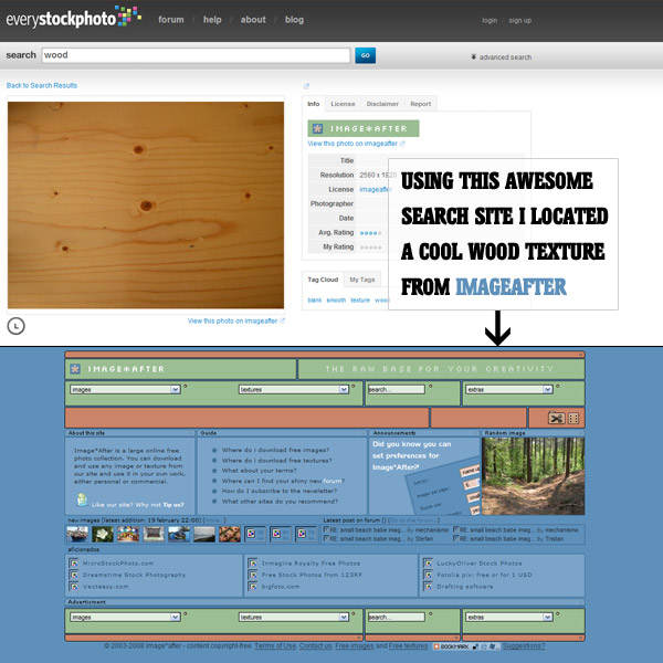 First up, we need a wood texture. I used the excellent EveryStockPhoto search tool that searches a bunch of free stock image banks to find an image. We have to be particularly careful here on Psdtuts+ because of usage agreements and what not. This image is from ImageAfter (SRC) who kindly allow you to use their images in commercial projects, yay!