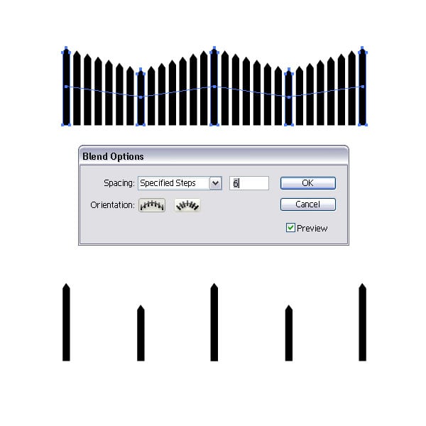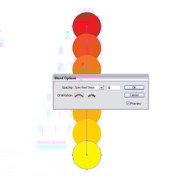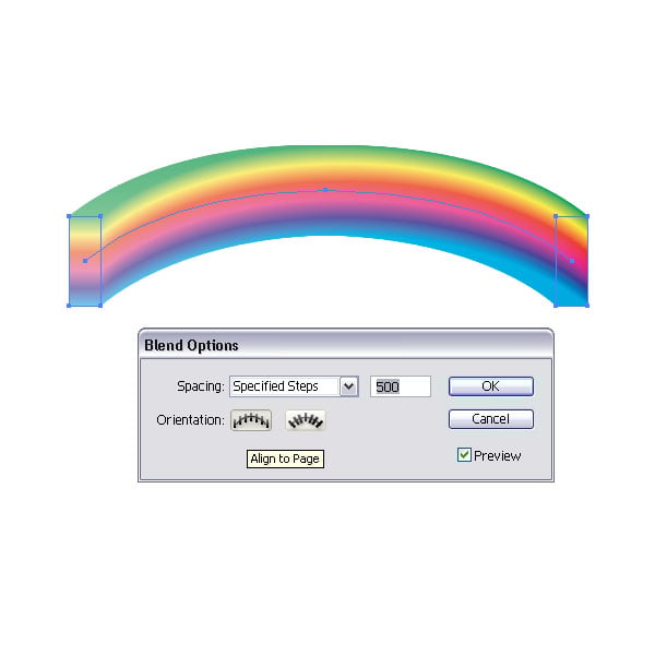 Once you have created a blend and applied a specific path, it can be important that in the Blend Option Palette you choose the correct options.
