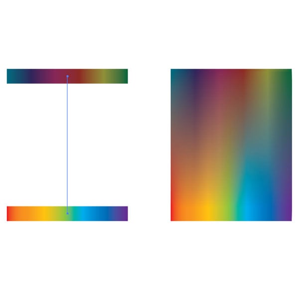 When selecting the Blend Tool (W), you can easily morph two or multiple colors together. Also, by clicking on the corner points of a shape instead of the middle, you can morph the shape into a mirrored object.