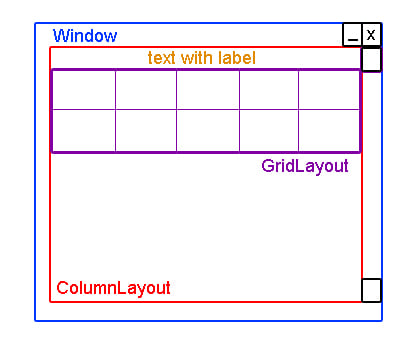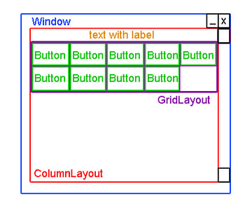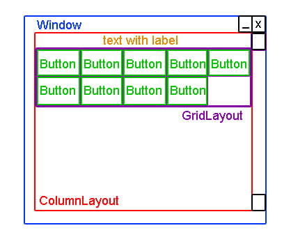 The Window is the topmost object in our UI hierarchy. All of the layouts and controls are children of this object. The first layout we'll use is a column layout, to hold the buttons: