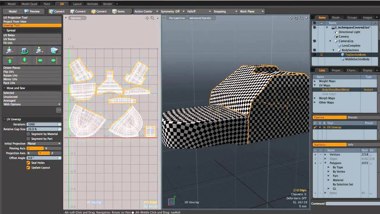 In these next few videos we'll be carrying on from where we left off in the modeling portion of the tutorial, by laying out our UVs for the Canon A1 using Luxology's Modo 401. Although at first this might seem daunting, Modo's much talked about UV toolset makes this process almost too easy!