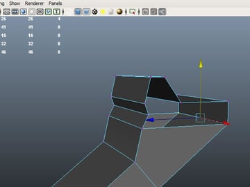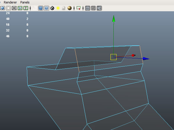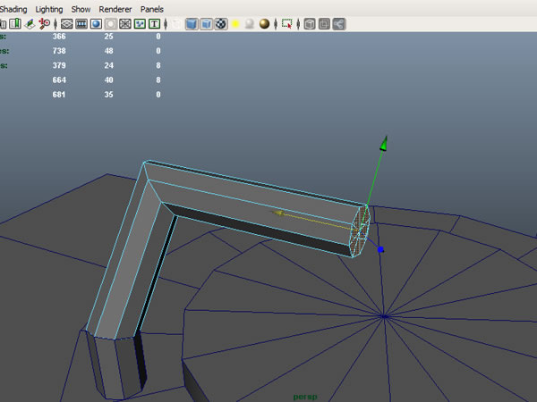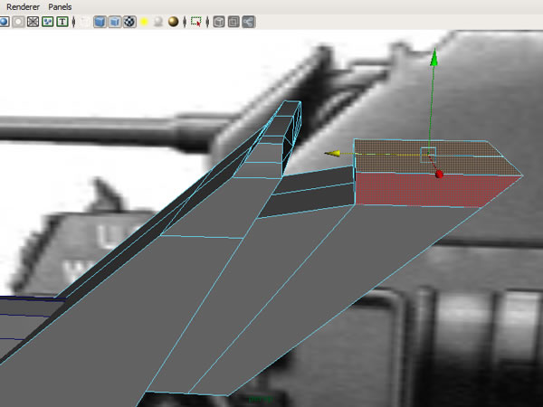 Select the faces shown below and extrude them, moving them on the X-axis.