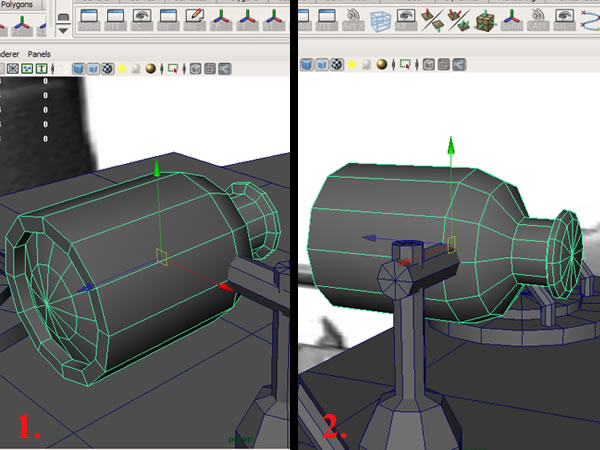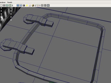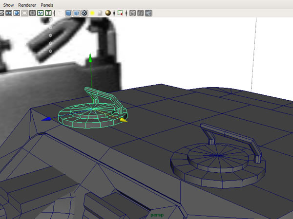 Now create another "Cylinder" with 12 sides and place it parallel to the hatch. Using the "Extrude" faces command, scale and the movement tools, create this shape.
