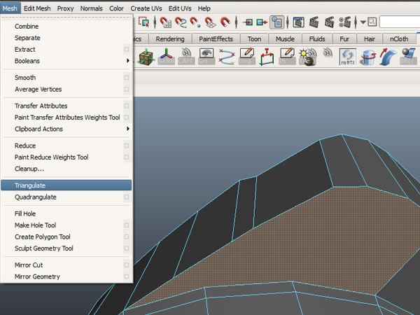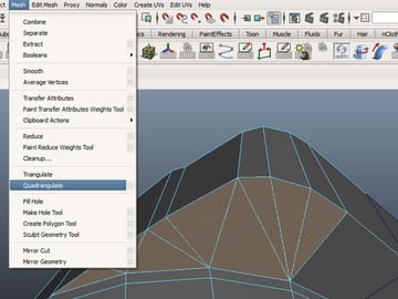 Now that we've triangulated the face completely, we don't need all the triangles it created. So to get rid of the additional triangles, we can either do it manually or go to "Mesh>Quadrangulate" with the faces selected .That will remove any additional triangles and convert it to quads.
