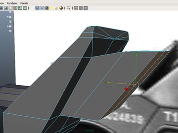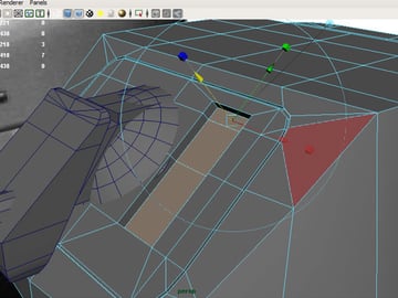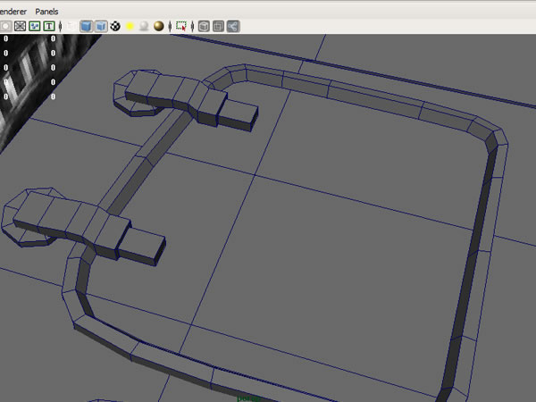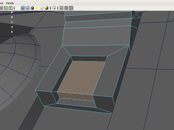 Now using the Split Polygon Tool make a shape like this, and extrude these faces inwards.