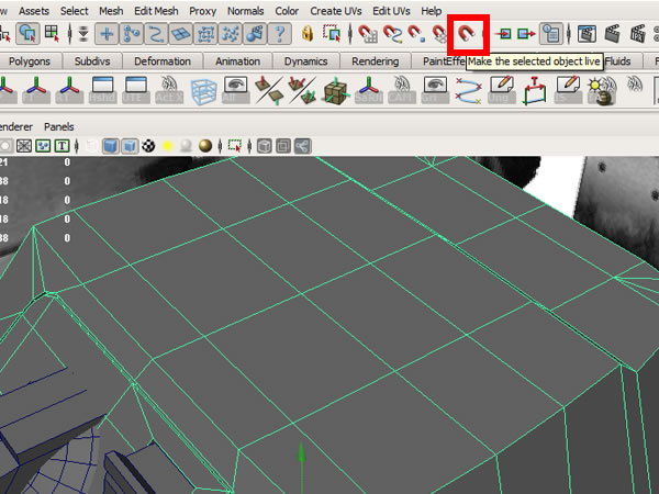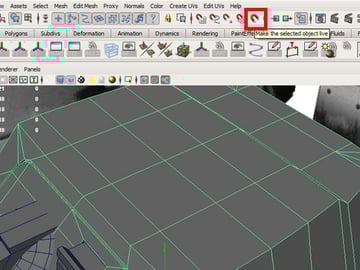 Select the main mesh and click on "Make Live", this mill make the mesh alive so you can draw any mesh interactively upon the surface of another mesh.