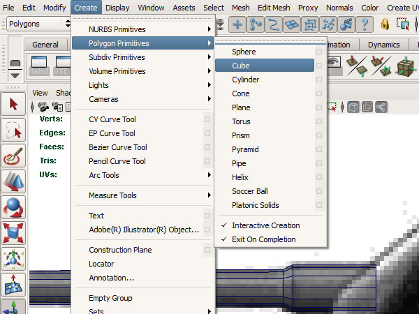Now go to "Create>Polygon>Cube".