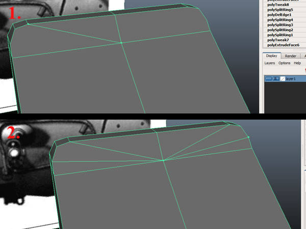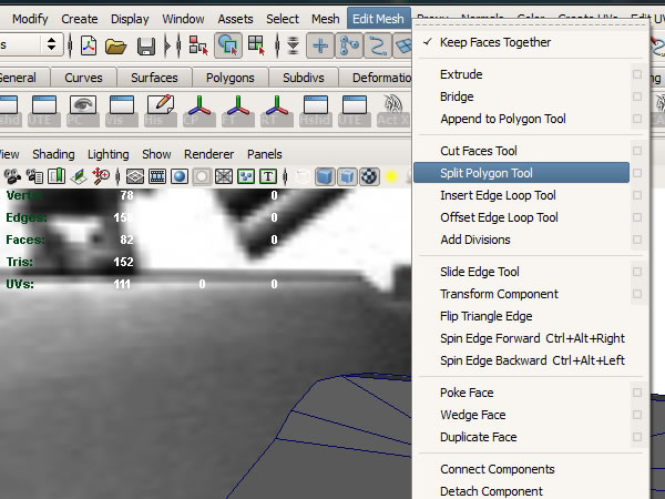 Now using the Split Polygon Tool, connect all the loose vertices so there wont be anyN-gons (Polygons with more that 4 sides).