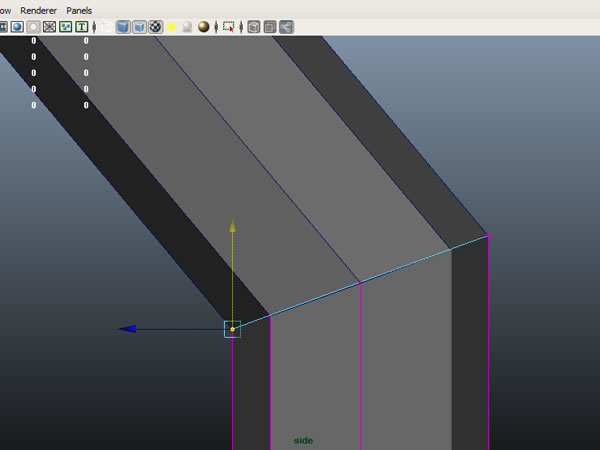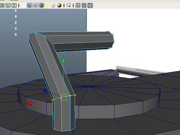 Now go to the "Side" view and create a new "Cube", place it inside the extrusion you just created, and extrude it’s top face, then move the vertices to get the shape shown.