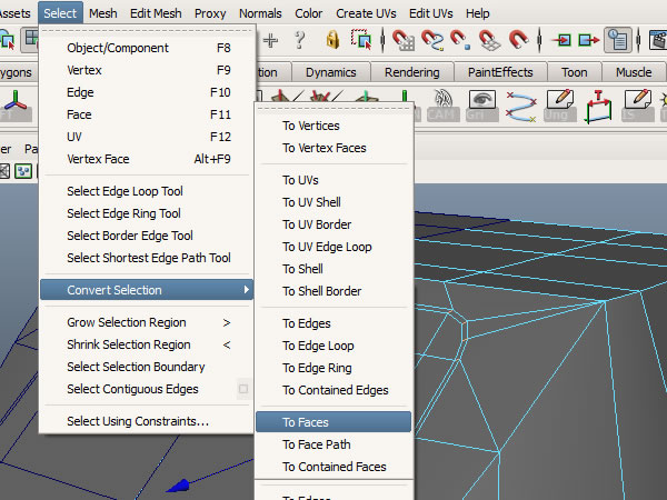 Now Go to "Select>Convert Selection>To Faces".