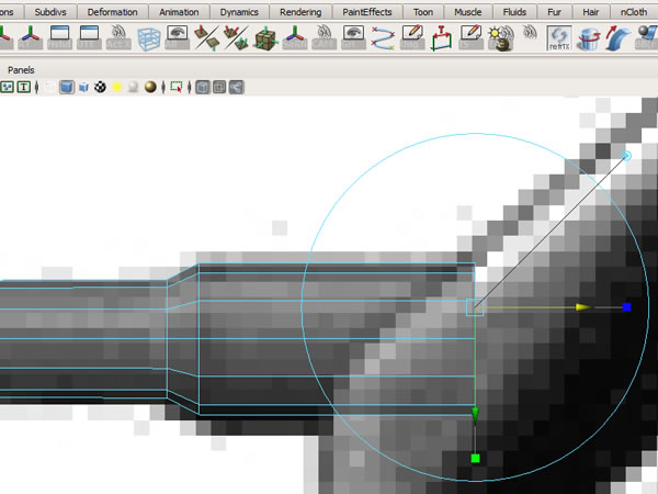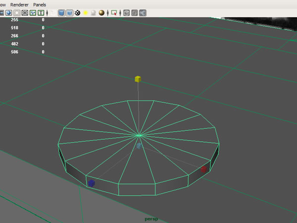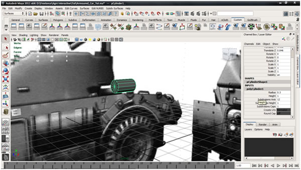 In the Channel Box, under the Inputs for the Cylinder, enter about 0.3 for the "Radius", 1 for "Height", 12 subdivisions for the "Width", and 1 for subdivision for the "Height".