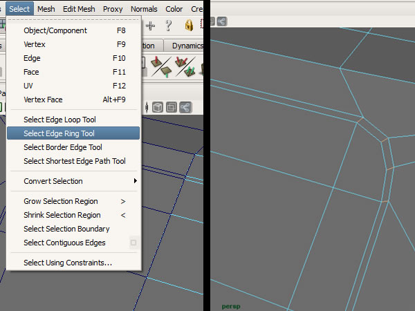 Now Go to "Select>Select Edge Ring Tool", and then double click on the edge to select the complete ring.