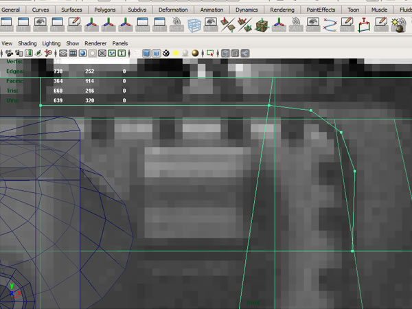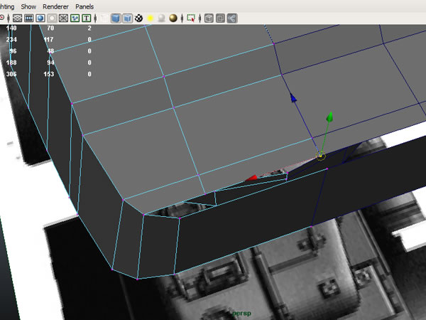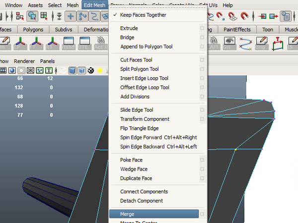 Now select the vertices you’ve just drawn and merge to the edge below, as we don't need two separate edges so close together.