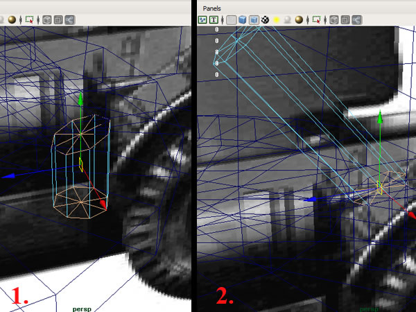 Move the cylinder over the image, and then start matching the outline of the model by editing the vertices. You can do this by "holding down the Right mouse button on the cylinder and choosing Vertex". Use the move and scale tools. These are the keyboard shortcuts for them. (W-move, R-scale, E-rotate.)