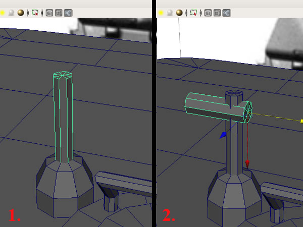 Now create another "Cylinder" with 8 sides on top of it, and then duplicate that cylinder and place it horizontally by rotating it 90 degrees.