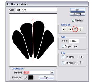 In the Art Brush Options window select the direction and Tints as the Colorization method.
