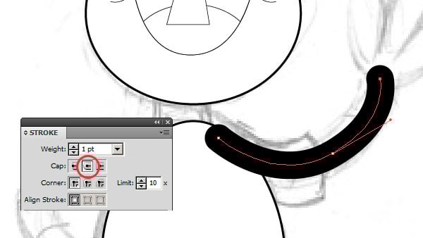 Now, a little detail. The cheek lines were flat, using the Width Tool (Shift+W) make them thicker.