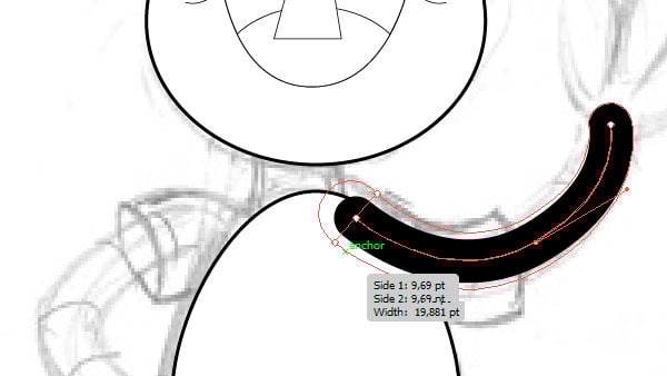 The same thing goes for the legs, with one exception. Here we can take advantage of another trick of the Width Tool: while dragging to enlarge, you can hold Option to modify only one side of the line (the outer side or the inner side). Legs are slightly asymmetrical, so make sure you take advantage of that cool feature!