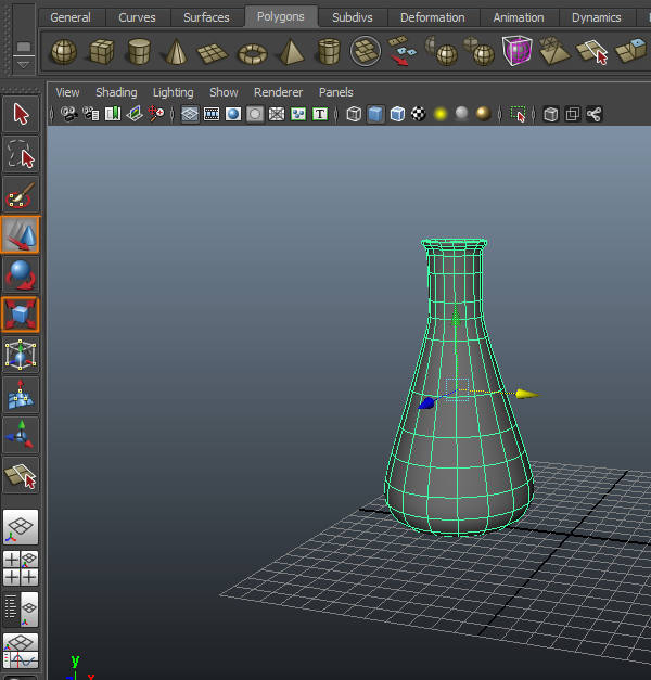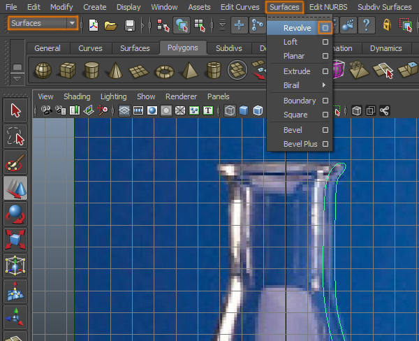 When you click on Revolve, the curve we created before will transform into a polygonal container.