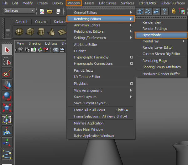At the “Surfaces” menu, go to “Surfaces > Revolve (option box)”.