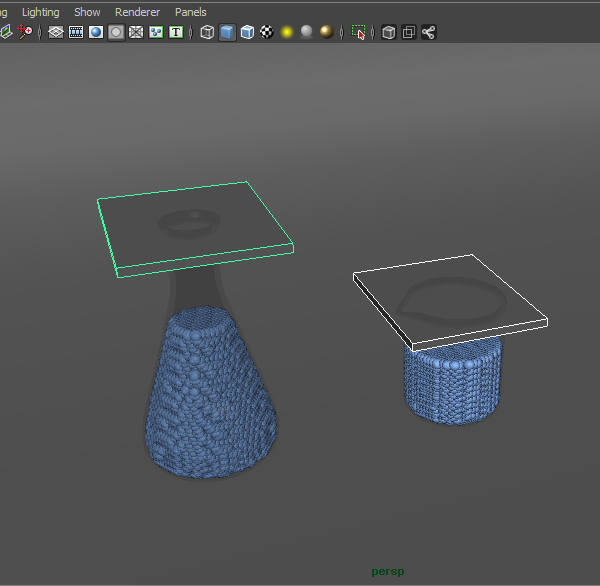 Create 2 cubes and move them on top of our containers, they will act as a cap, for the water not to go out of the containers.