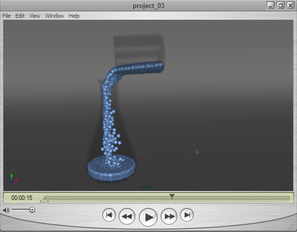 This will create a file with the animation. Check that the water is doing what you want it to do. If not, adjust the container animation and do another playblast. I did 10 playblasts before I liked the animation.