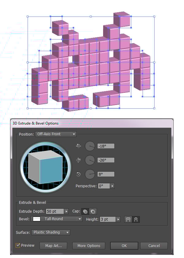 Render a Simple 3D Pixel Space Invaders in Adobe Illustrator