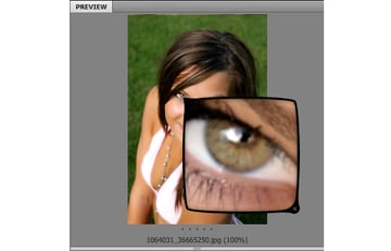 After finding and selecting an image, a preview of the image is displayed in the Preview panel which is located at the right. Simply, click anywhere on the preview of the image to enable the Loupe tool. You can later zoom in or out, inside of the Loupe tool, which is very cool.