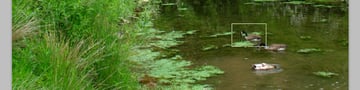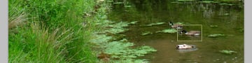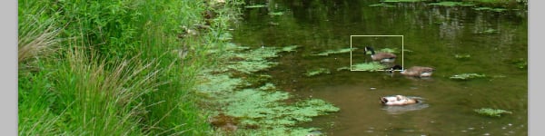 To enter the Birds-eye View, you need to zoom in on an image, then press and hold down the H key and then click and hold your mouse somewhere in the image. A rectangle will be displayed which indicates the current zoom level and location. Reposition the rectangle and release the mouse and H key. Photoshop will then zoom back to the previous zoom level and reposition the view. The ducks are very close to each other, but this example should visualize how it works.